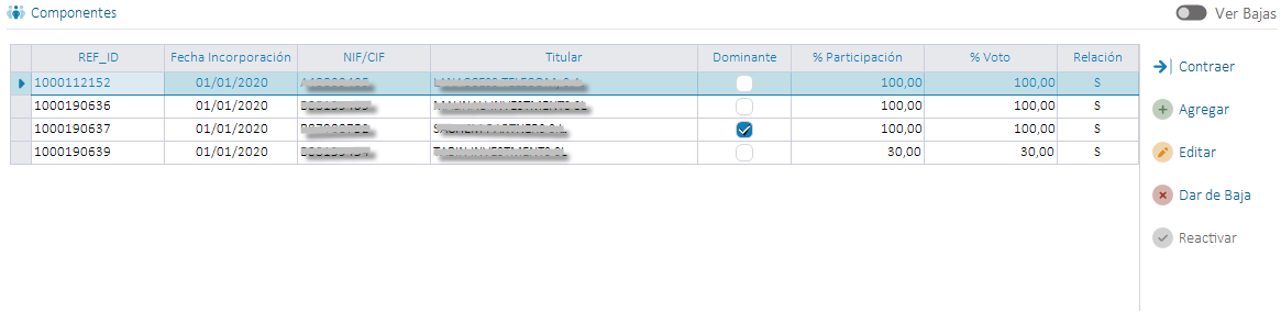 Si un grupo económico no tiene entidad dominante, va a aparecer un mensaje de alerta justo al lado del check "ver bajas" avisando de ello: