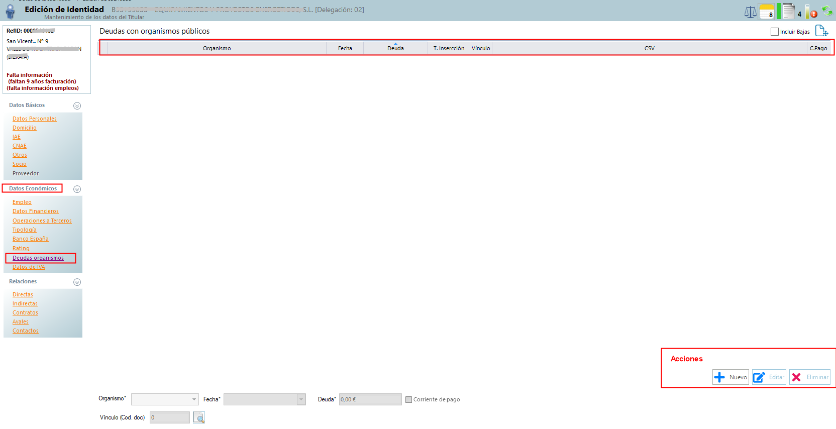 Se incorpora en la zona identidad una nueva opción "Deudas organismos".