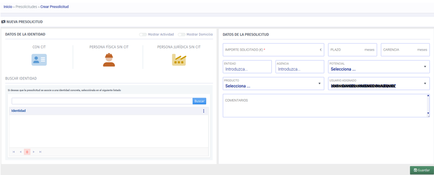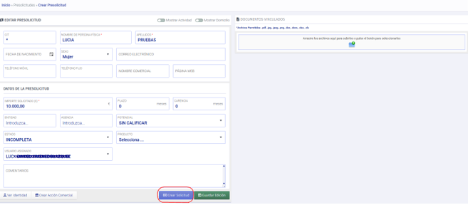 Se añade la opción de crear una solicitud desde la presolicitud.