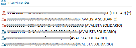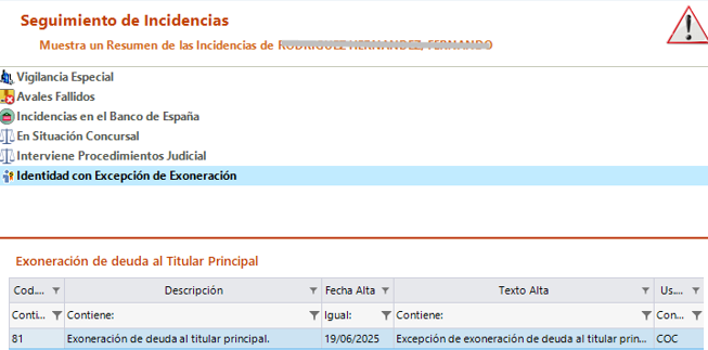 Para identificar si un interviniente del contrato tiene dada de alta una excepción se cambia de color el icono: