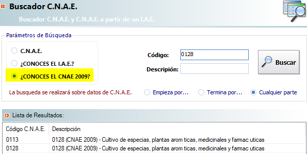 En el buscador de Cnaes se añade una búsqueda por cnaes 2009: