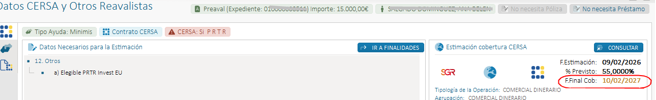 En la consulta de Datos Cersa se va a visualizar la Fecha Final de Cobertura Prevista, cuando esta fecha tenga menos de un año se visualizará de color rojo.