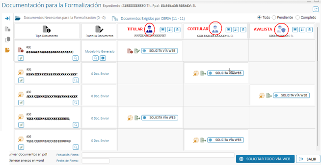 Debido a la exigencia documental de CERSA relativa a cotitulares o empresas sustentadoras,cuando se consulte la cobertura de CERSA y devuelva los documentos necesarios, en la pantalla de documentación CERSA veremos un detalle adicional en algunos tipos de documentos de CERSA identificando a quién tenemos que pedir cada documento. El resto de tipos de documentos seguirán como hasta ahora.
