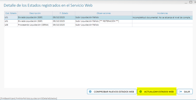 En la pantalla de Detalle de los Estados registrados en el Servicio Web, actualmente estaba la opción de comprobar nuevos estados web, se añade una nueva opción de actualizar todos los estados del servicio WEB.