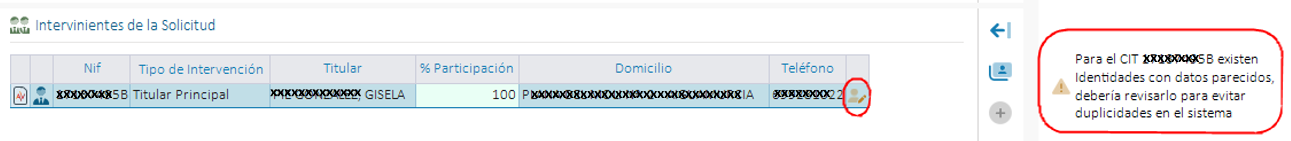 4. Con el mismo CIT. En la rejilla de intervinientes se muestra la identidad de G3 y siempre se descargará la solicitud en dicha identidad. Si se quiere modificar algún dato de esta identidad deberá hacerse a posterior desde el mantenimiento de esta.