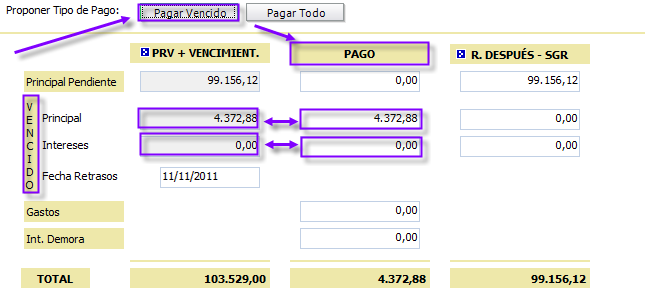 Al pulsar esta opción propone pagar el Principal Vencido e Intereses Vencidos. Actuando de la siguiente manera: