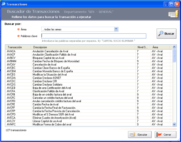 Gestión CERSA Transacciones Este formulario presenta las distintas transacciones que se pueden ejecutar y van a afectar al área de CERSA. Las transacciones van a generar un cambio en el dato y quedará reflejado quién y cuando se realizó.